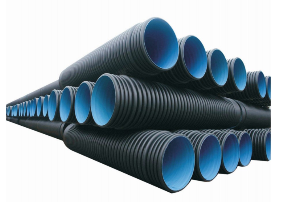 HDPE双壁波纹管是以HDPE(高密度聚乙烯)为主要原料,分别由内、外挤出机共同挤出,一次成型,内壁平滑,外壁呈梯形波纹状,内外壁之间有夹壁空心层的塑料管材。管壁截面和扩口为双层结构 ,其内壁光滑平整,外壁为等距排列的具有梯形中空结构的管材。